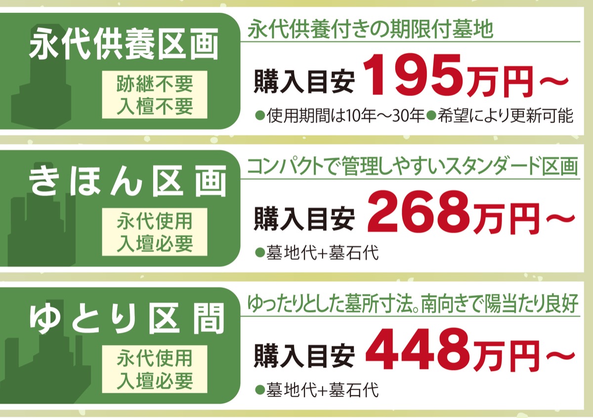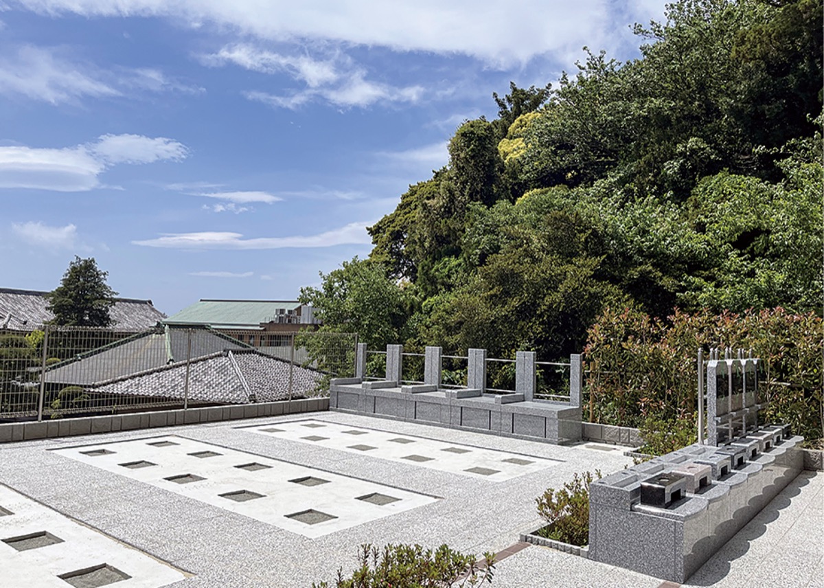 同寺院に6月、20数年ぶりに「遊行寺墓苑」が新たに開かれた。区画は3つ=表参照。木々の音や鳥のさえずりが聞こえる緑を背後にしつつ、陽当たりは抜群。段差がないため車イスで墓参りができるのも嬉しい。
