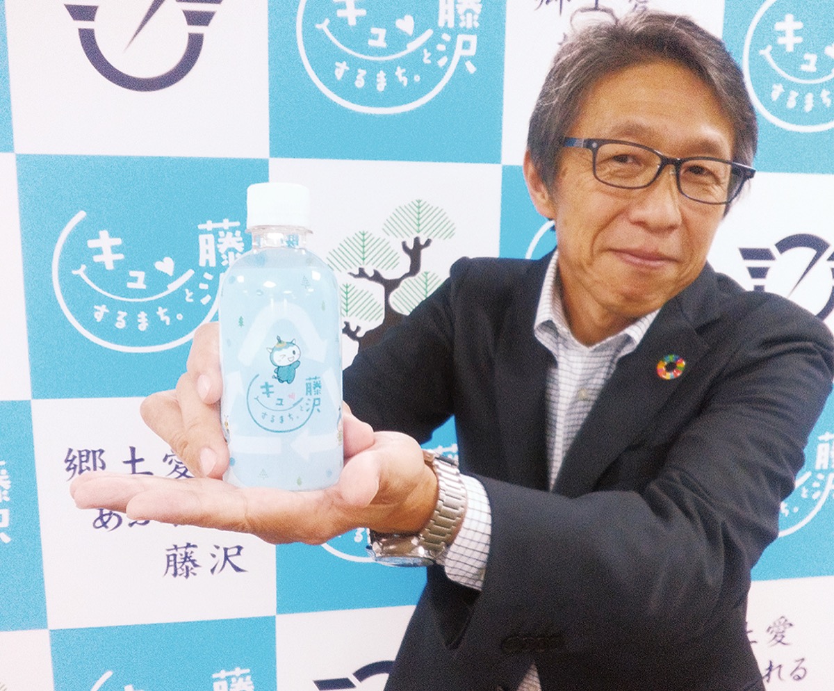 藤沢市内で排出されたペットボトルをリサイクルし、ペットボトル原料として再開発した「きゅん♡とする循環型ペットボトル飲料」が完成し、24日に藤沢市役所でお披露目会が開催された。中には290ミリリットルのミネラルウォーターが入っている。8月5日(土)にリサイクルプラザふじさわで開催される「Eco2(エコエコ)夏祭り」で配布予定。