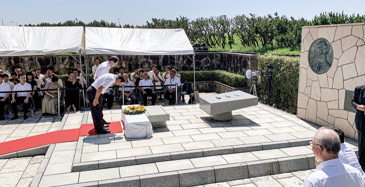 中国の国歌「義勇軍行進曲」の作曲者で、1935年に鵠沼海岸で他界した聶耳(ニエアル)をしのぶ碑前祭が命日の先月17日、県立湘南海岸公園内の記念広場で開かれた。今年は日中平和友好条約締結から45周年にあたり、藤沢市の友好都市、中国・昆明市から代表団も参加。日中友好の架け橋となった故人に思いをはせた。