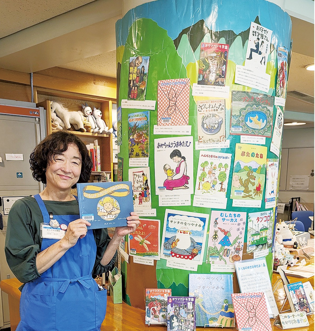 藤沢市総合市民図書館(湘南台7の18の2)に子どもたちが実際に見たり、読んだりした「おススメ本」がたくさん実る本の木がお目見えした=写真。2003年から続き21回目。