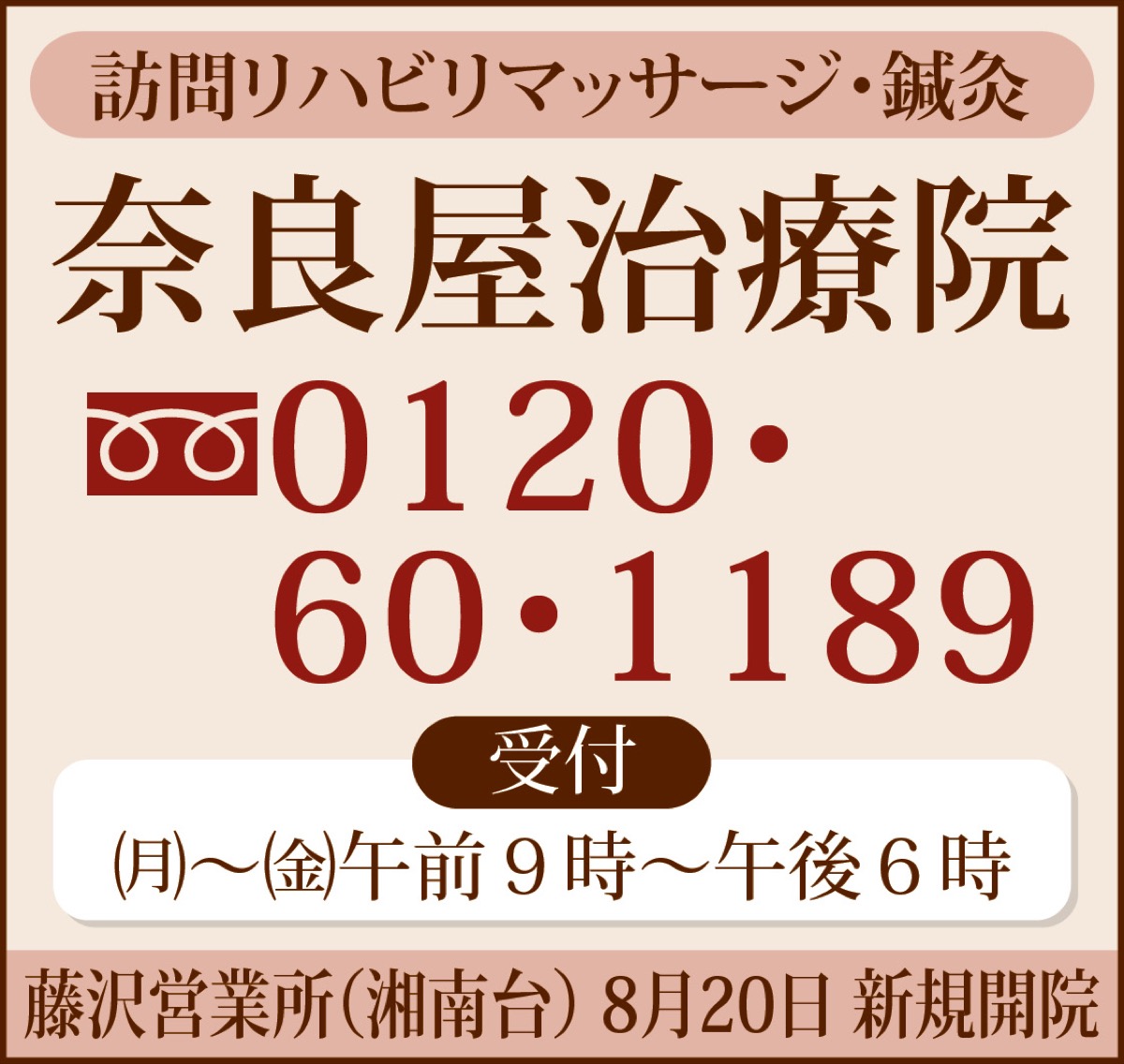 いつまでたっても自分の足で歩きたいとは、誰しもが思うこと。そんなお手伝いをしてくれる、訪問リハビリマッサージ・鍼灸「奈良屋治療院」が8月20日(日)に、藤沢市内にも開院する。