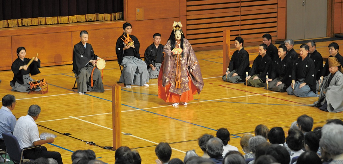 藤沢の秋の風物詩として親しまれる「遊行寺薪能」が先月23日、西富の藤嶺学園中学校・高校の体育館で開かれた。新型コロナの影響などで4年ぶり。約700人が日本伝統の幽玄の美を堪能した。