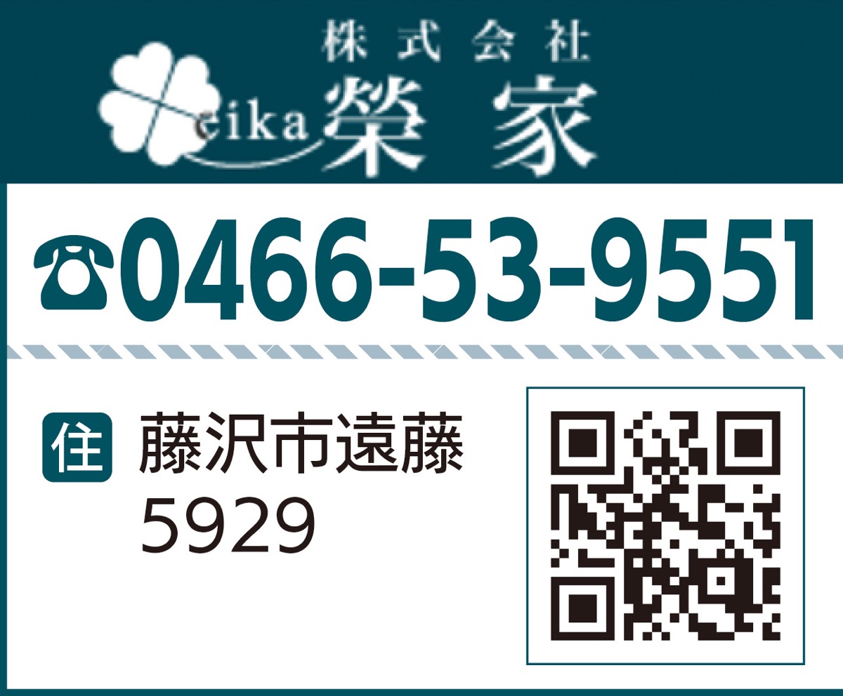 湘南の地で活動して10年。「地域の皆さんの信頼にお応えし、地元藤沢の方に『榮家がある』と覚えていただけるよう尽力します。ご相談はいつでもお気軽に」とのこと。見積もり、相談は無料で随時受付中。