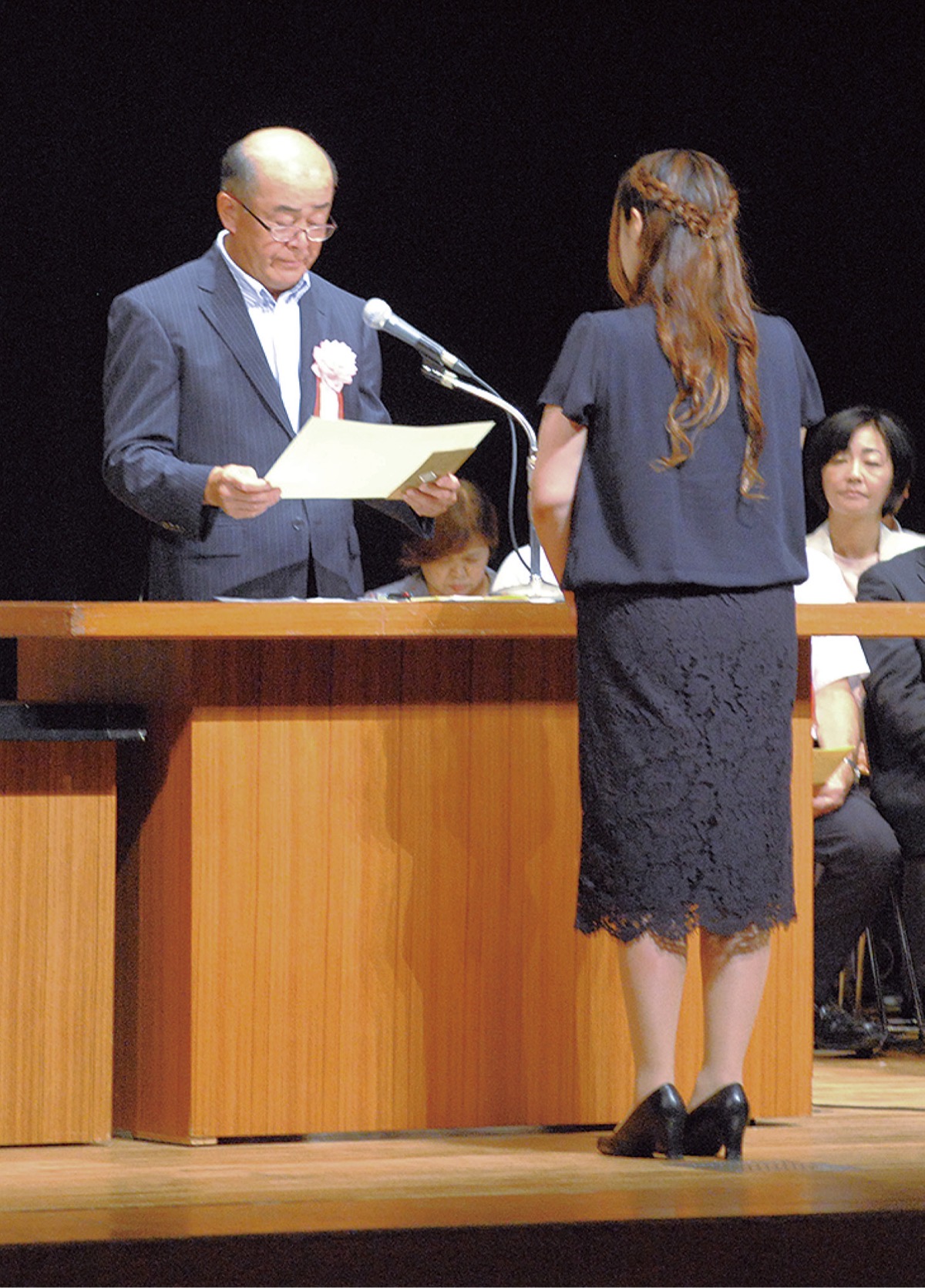 大会では勤続20年以上2人、15年以上4人、10年以上8人、5年以上19人の教職員計33人の表彰を行い表彰状と花束が手渡された。