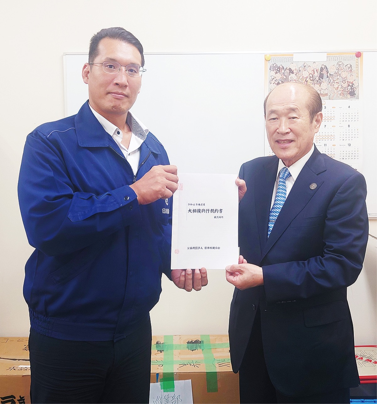 藤沢春名物として知られる大相撲藤沢場所(最上重夫勧進元/(株)湘南営繕協会代表取締役)が来年4月13日(土)に行われることが決まった。10日、(公財)日本相撲協会(東京都墨田区)で、巡業部の立田川親方(元小結・豊真将)を訪問。巡業契約を交わした。会場は例年同様、藤沢市秋葉台文化体育館。29回目となる。