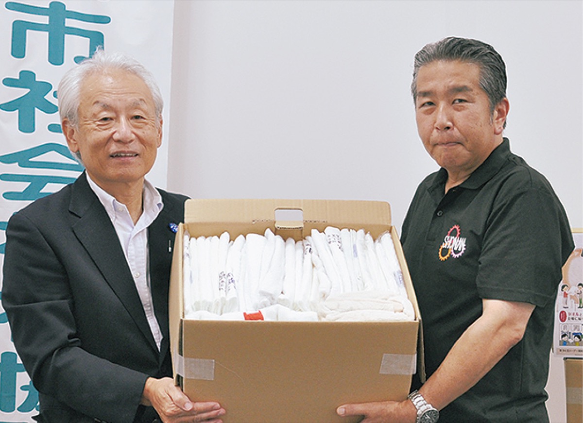 藤沢、茅ヶ崎、寒川の労働組合などで構成される湘南地域労働者福祉協議会(宮城宏之会長)が15日、タオル380本を藤沢市社会福祉協議会に寄贈した。