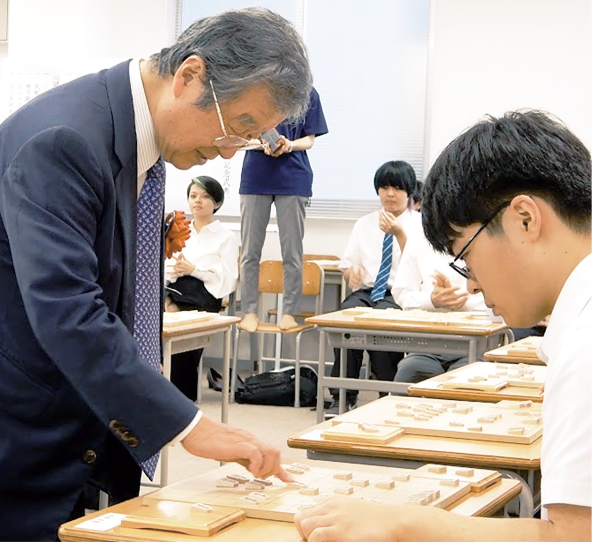 鵠沼石上の湘南一ツ星高等学院で14日、新校舎開所記念式典が行われ、現役最年長のプロ棋士である青野照市九段(70)が講演を行った。式典後には生徒や保護者らとの多面指しも行われた。