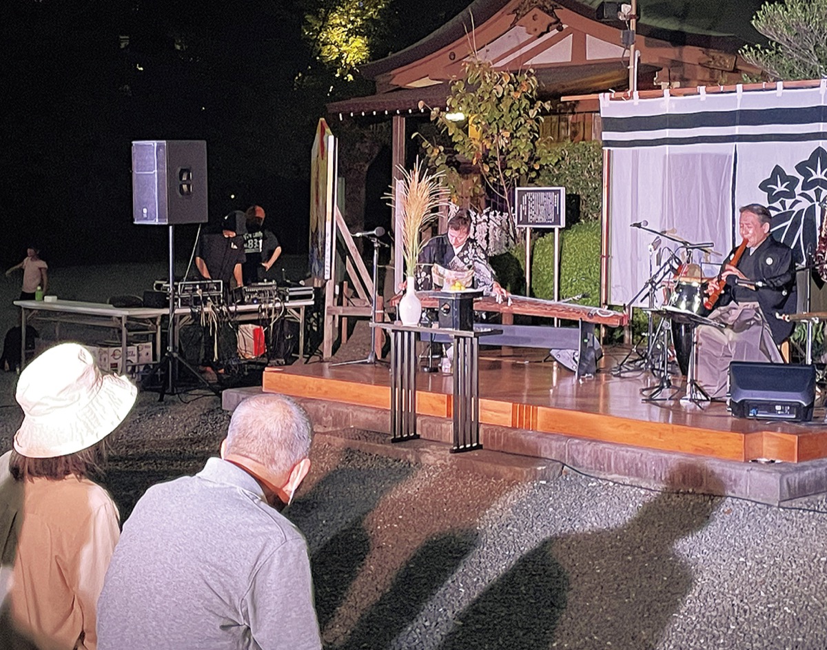 中秋の名月の夜に和楽器の音色を楽しむ「邦楽の夕べ」が先月29日、藤沢の白旗神社境内で行われた。今年で16回を数える恒例のイベントで、この日は夕暮れ時から多くの来場者でにぎわった。