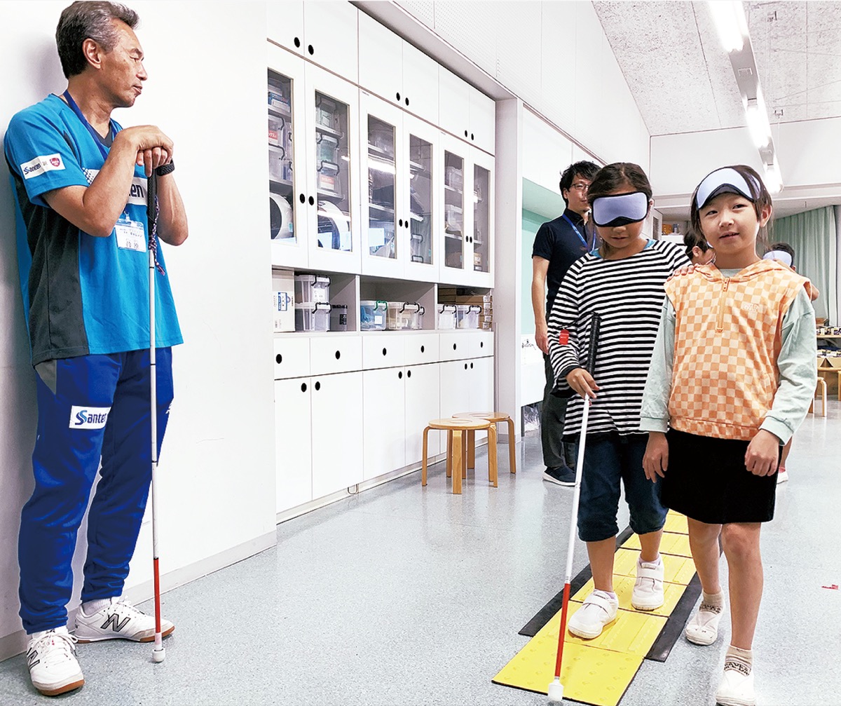 子どもたちに目の健康や視覚障害者への支援の大切さを伝えるプログラムが6日、湘南学園小学校(鵠沼松が岡)で開かれた。小学1〜5年生までの16人が参加。パラリンピックメダリストらの指導で目の見えない日常を疑似体験し、視覚障害への理解を深めた。