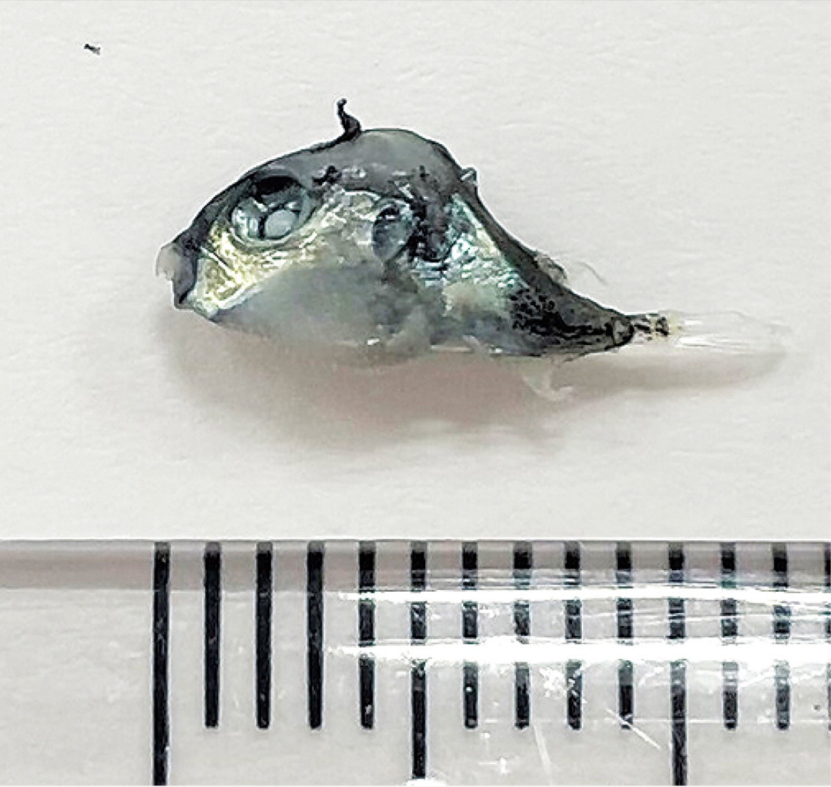 藤沢市保健所は19日、「オーケー藤沢店」(藤沢市南藤沢)で販売したシラス干しにフグのような稚魚(体長約1cm)=写真=が混入していたと発表した。食べると健康被害の恐れがあるため、当該商品が手元にある場合、食べないように呼び掛けている。