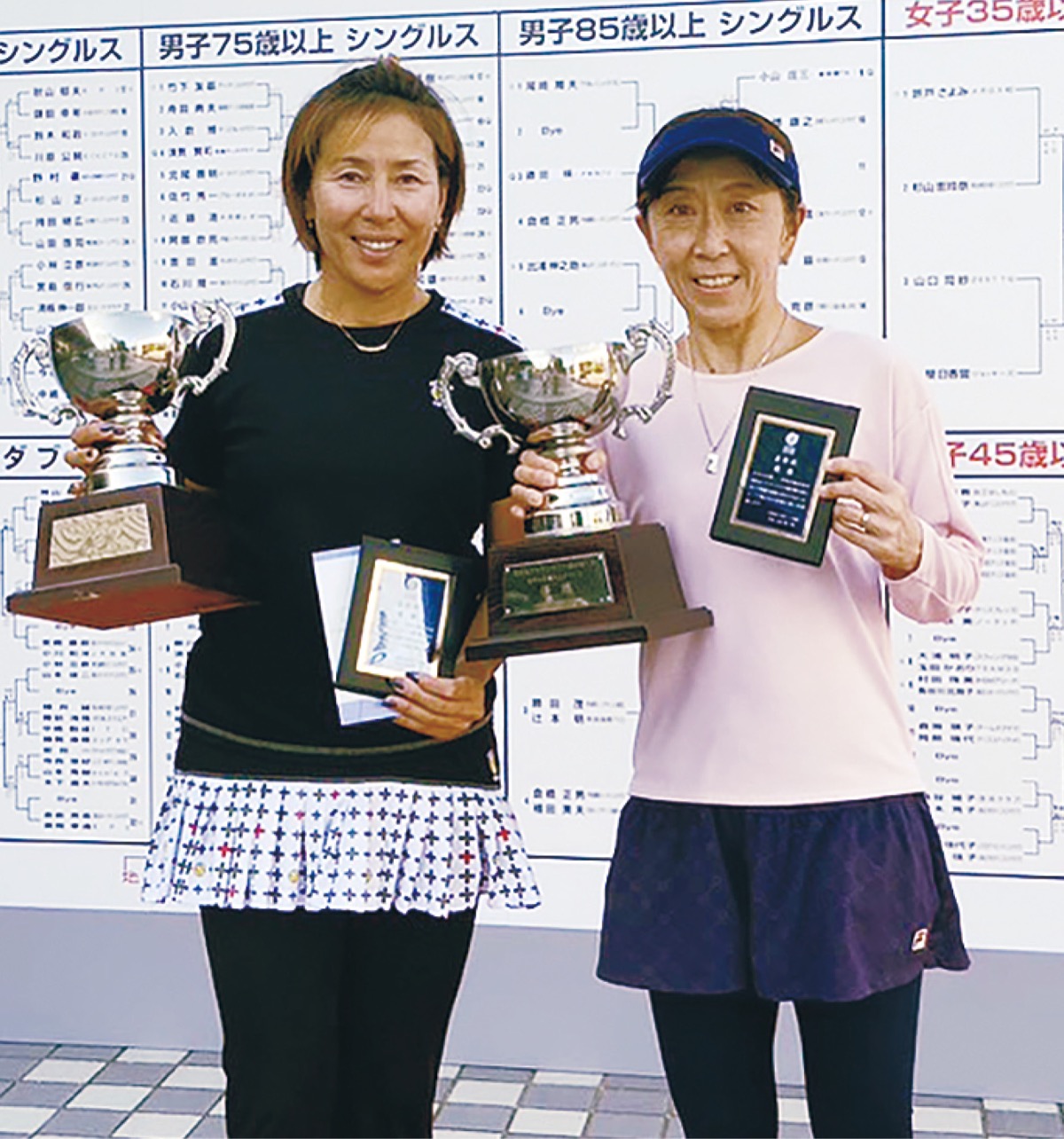 ペアを組んだのは横浜市在住の梅田真由美さん。予選から順調に駒を進め、決勝では昨年大会で敗れた相手の橋本明香さん・江馬愛子さんペアと対戦。互いに4ゲームを獲得する接戦の中、橋本さんが足を負傷し途中棄権となり、塚本・梅田ペアの勝利となった。