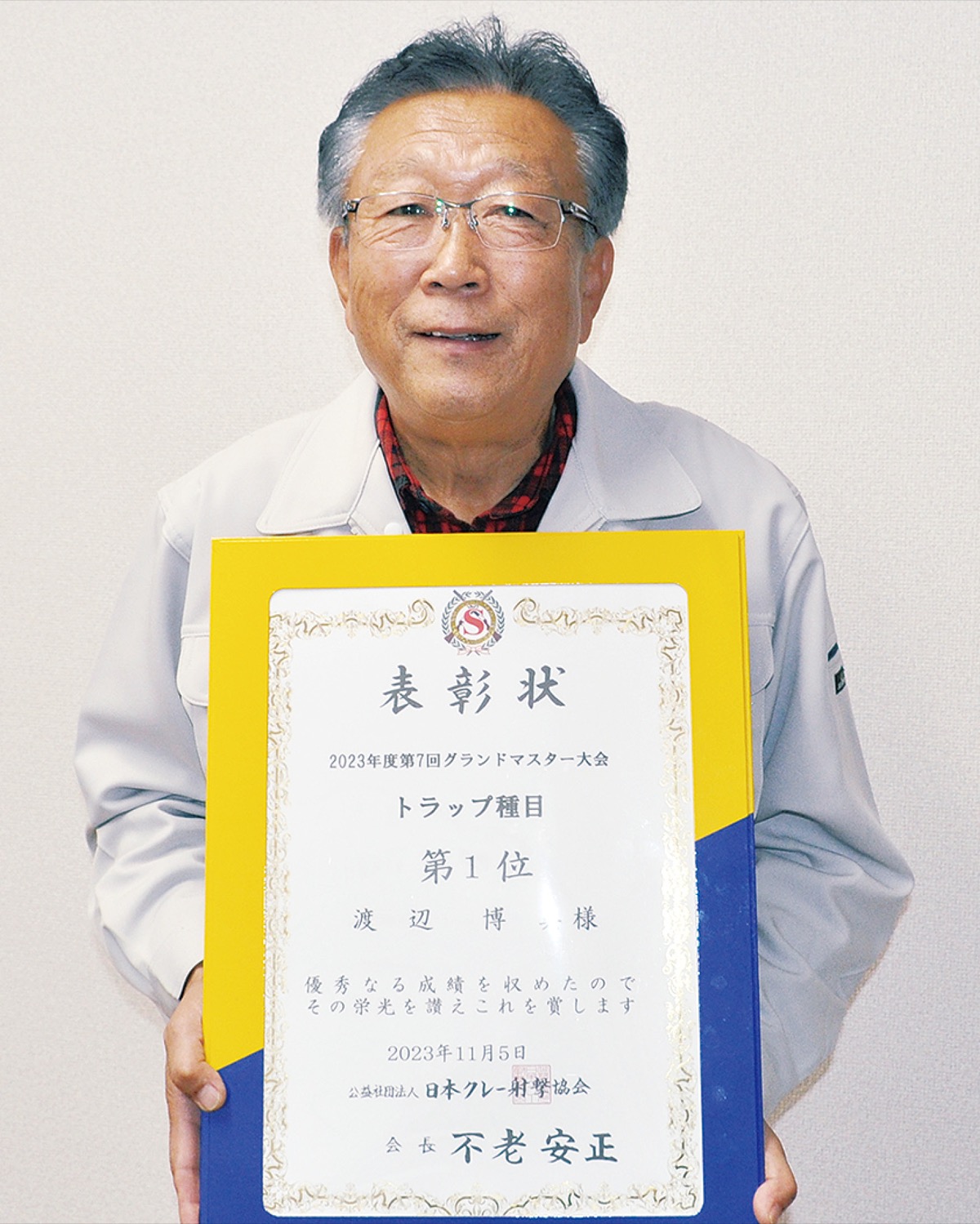 60歳以上が参加するクレー射撃の大会「2023年度第7回グランドマスター大会」が先月5日、伊勢原市の県立伊勢原射撃場で行われ、遠藤在住の渡辺博美さん(73)がトラップ部門で優勝した。
