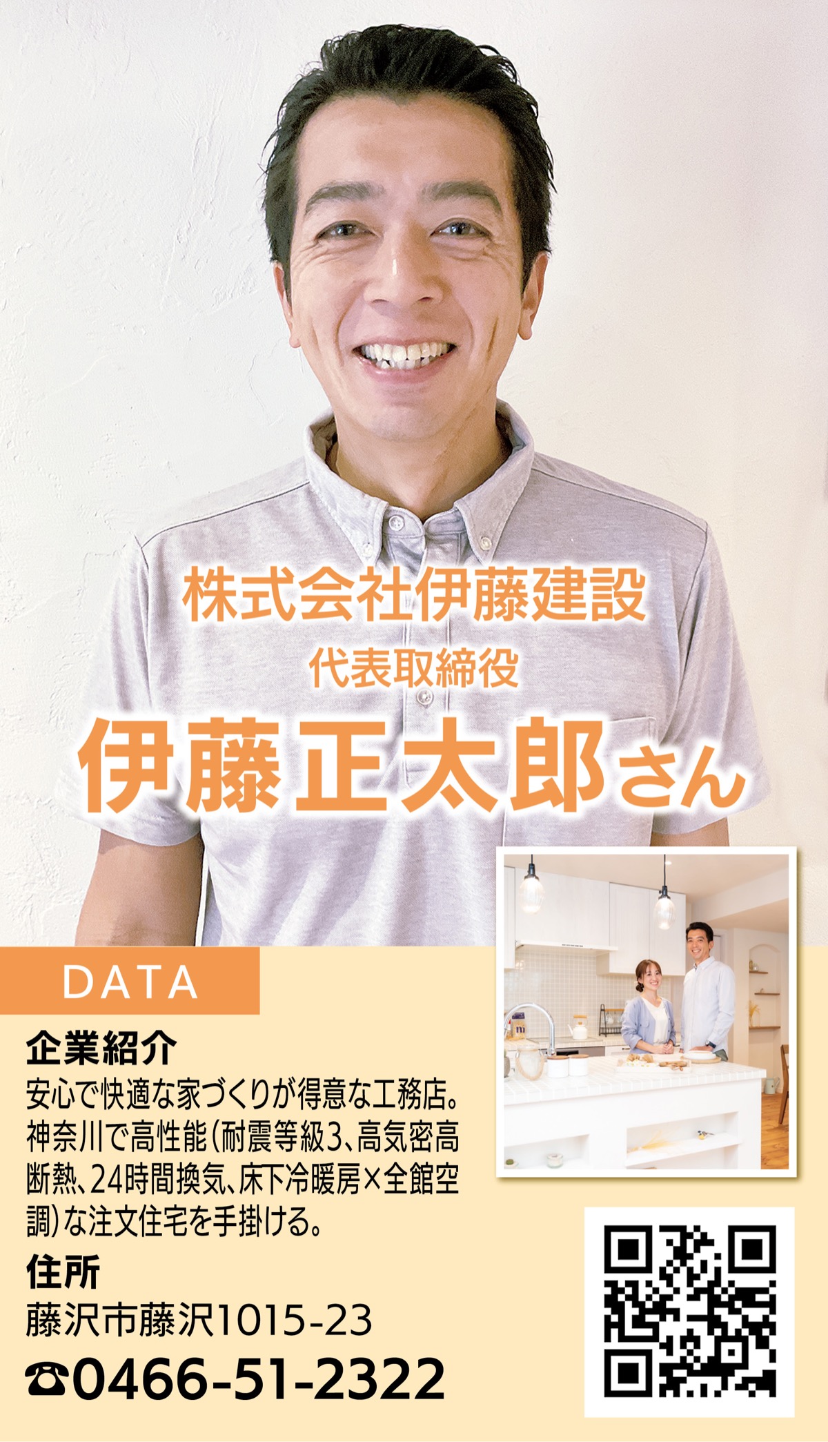 自然素材を生かした住宅を手がける(株)伊藤建設。代表取締役の伊藤正太郎さんは「人生で最も大きい買い物である家を我々に託していただけるのは光栄なこと。お客様に寄り添い、丁寧な仕事をするよう心がけています」と話す。