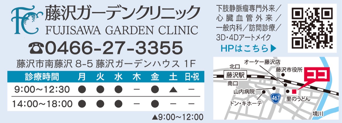「下肢静脈瘤の手術はメスを使わず30分程度、徒歩や車を運転して当日に帰ることも可能です」と話すのは、藤沢駅南口から徒歩5分の好立地に開院した同院の高木剛院長。