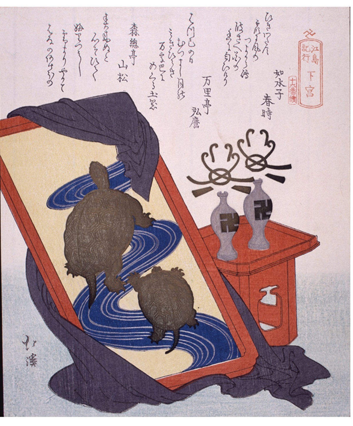 ほかにも歌川広重が描く七福神や、曲亭馬琴の読本、十返舎一九の作品などを展示する。