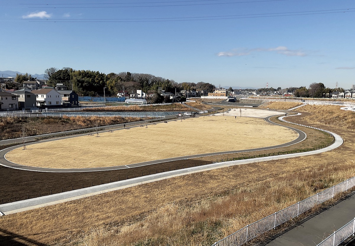 同遊水地は洪水時、約46万㎥の水を一時的に貯留することが可能で、浸水面積を約25万㎥減少する効果がある。県は今後、24年度からは多目的スポーツ広場として活用できるC池を整備。B池は自然観察ができるビオトープと親水広場、D池は散歩広場などにする予定で、順次整備を進めていく。