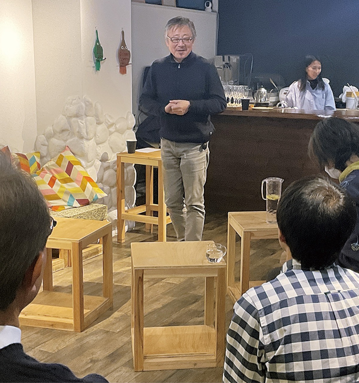 長後商店街会館1階カフェスペース「Cafe Base 長後」で3日、俳優の松尾貴史さんの朗読ワークショップが開催され、18人の参加者が朗読のコツを学んだ。イベントは、同スペースを運営する慶應義塾大学湘南キャンパス卒業生らが企画した。