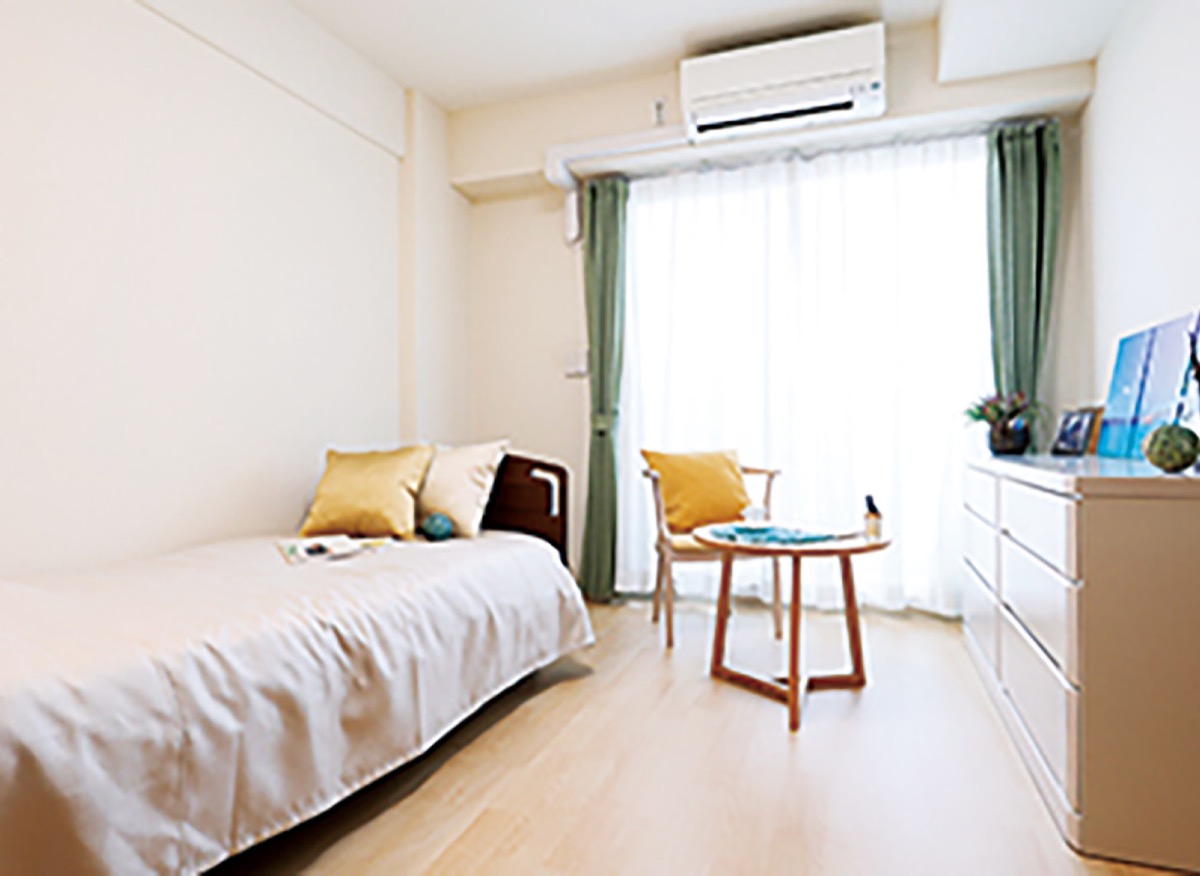 居室(Aタイプ)は約18平方メートル。心安らげるプライベート空間で、ベッド、チェスト、クローゼットを用意。すぐに新しい生活をスタートできる。