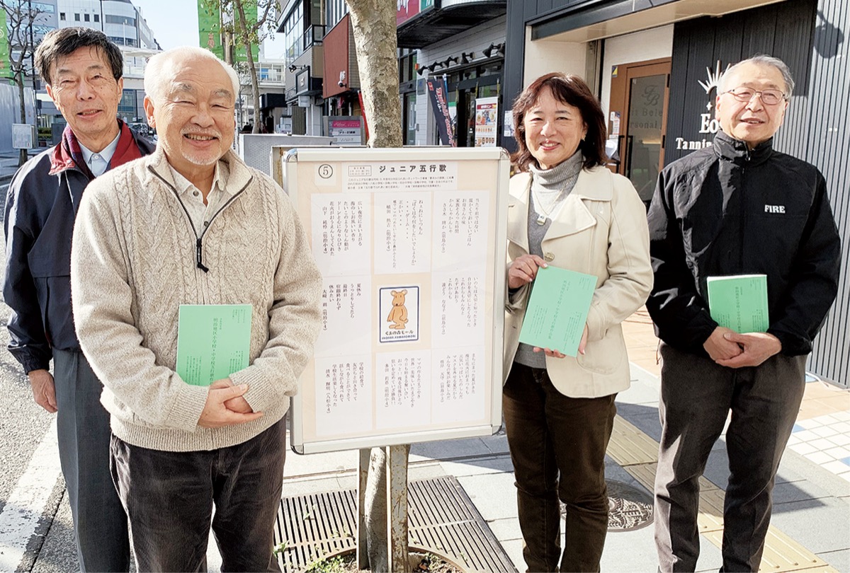 小中学生が日頃の生活で感じたことを表現する「ジュニア五行歌」の展示が、JR辻堂駅南口の湘南銀座商店街で始まった。「五行歌でふれあい実行委員会」の主催。22回目の今年も全120首を展示した。
