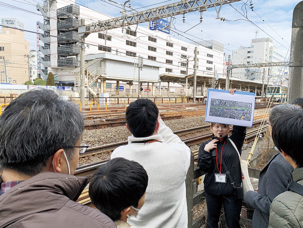 自治体と連携し、沿線地域の魅力を発信する企画の一環。フィールドワークは「日本最大級のスイッチバックの謎に迫る」と銘打ち、鉄道ファンなど19人が参加した。