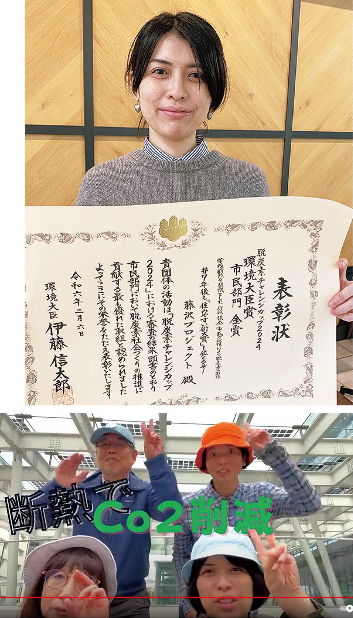 市民が主体となり、「断熱化」による脱炭素化を目指して活動する「#6年後も本当に住みやすい街大賞1位をとるぞ!藤沢プロジェクト」(藤法淑子代表)が先月6日、優れた取り組みを表彰する「脱炭素チャレンジカップ」で環境大臣賞(市民部門)を受賞した。市民のみならず行政や地元企業と連携しながら脱炭素の機運を高めたことが評価された。関係者は「断熱の意義や活動を知ってもらう契機になる。今後の活動の励みにしたい」と喜んでいる。