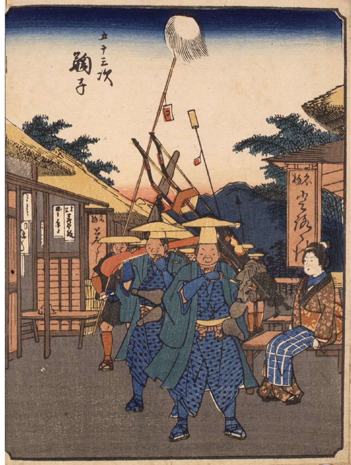 展示されるのは、浮世絵師の歌川広重が1852年に発表した「人物東海道」など73点。同作では人の姿を中心に、旅の様子や東海道の宿場町、旅籠、茶屋が季節を織り交ぜながら描かれている。