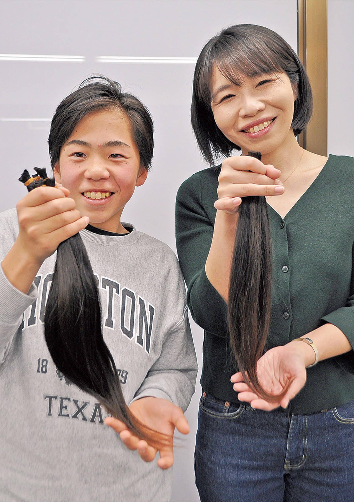 野口君は3年生のとき、漫画のキャラクターに憧れて髪を伸ばし始めた。切ろうかとも考えたが、父の隆行さん(51)からヘアドネーションのことを聞き、「困った人のためになるなら」と母の麻里子さん(38)と一緒に挑戦することに。4年間で腰まで伸びた髪の毛は64cmにもなった。