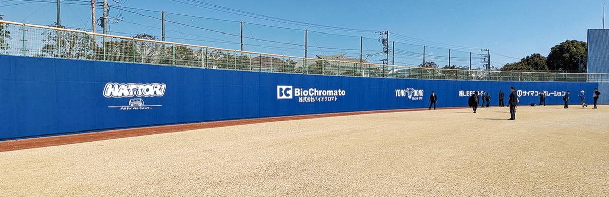 寄付を行った地元企業(株)バイオクロマトの木下一真代表は、完成を喜ぶとともに「自分が小学生の頃に行進した球場。次世代を担う子どもたちの成長に少しでも貢献できていたらうれしい」と話した。