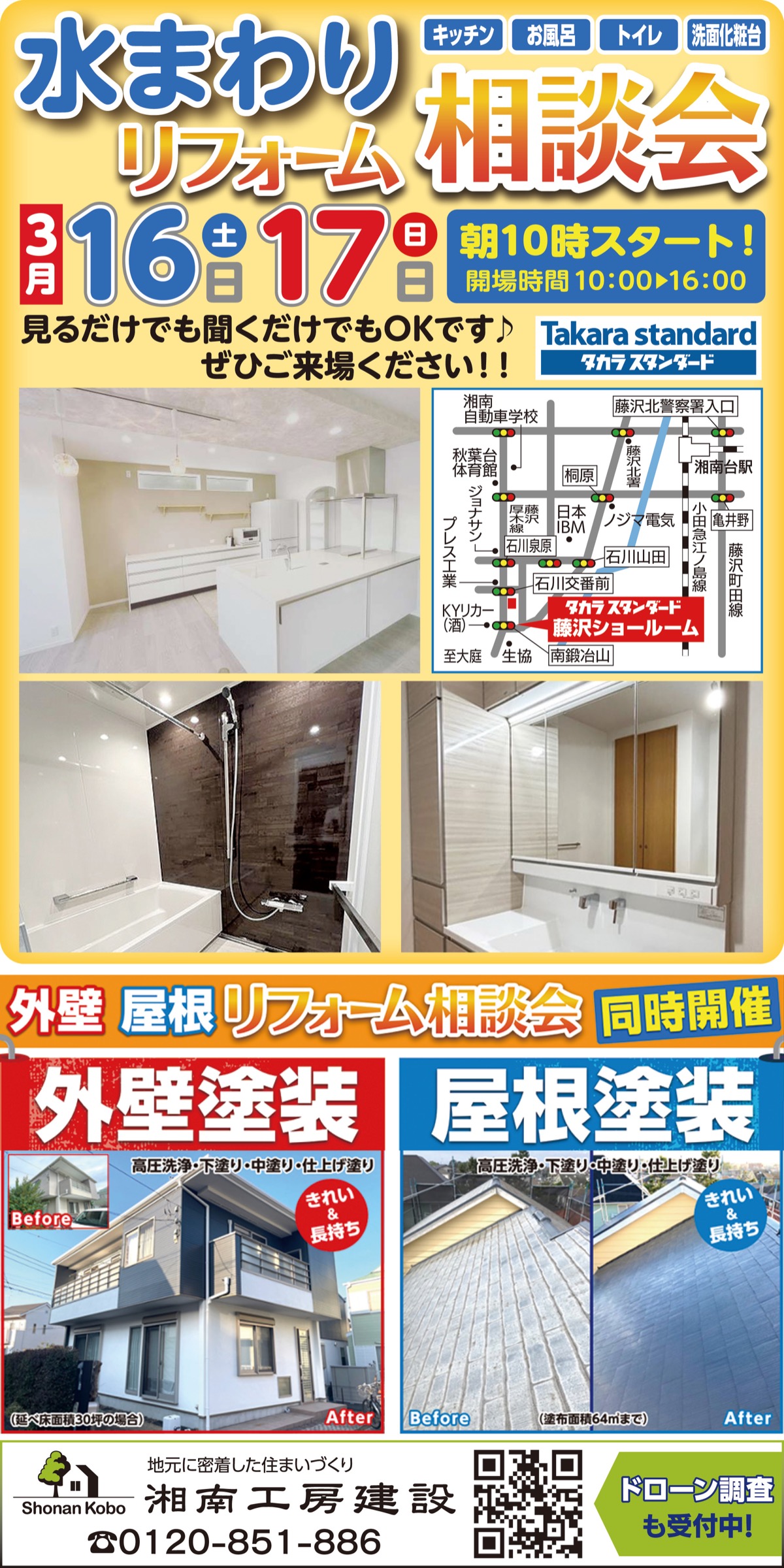 3月16(土)、17(日)タカラスタンダード藤沢ショールーム