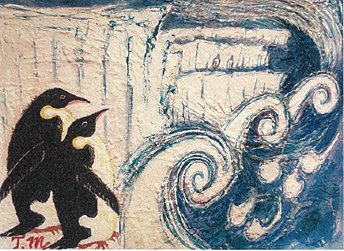 湊辰治は岩手県花巻市生まれ。新聞特派員としてシベリア漁場の文や絵などを手掛けた。51年から6年間は「南極の絵が描きたい」と捕鯨船に乗船し、乗組員として作業の傍ら南氷洋や寄港地などを描いたという。