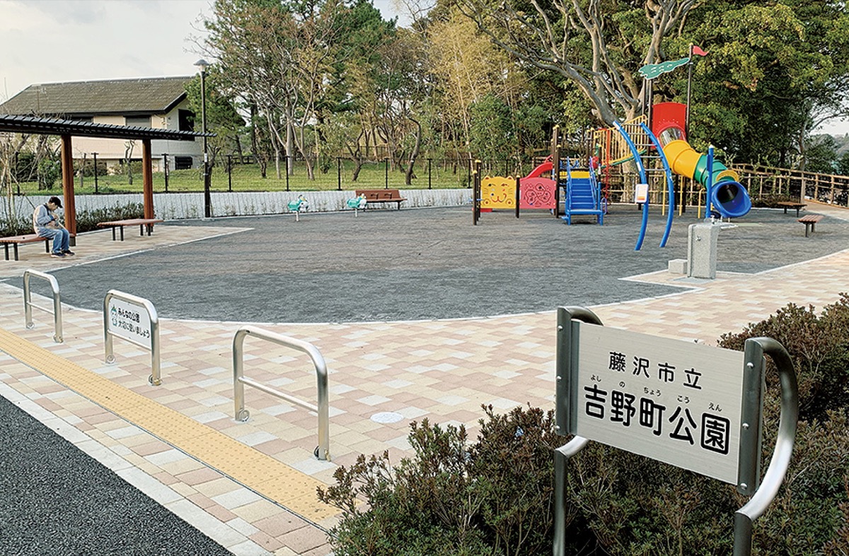 藤沢市の複合施設「Fプレイス」の隣接地に先月24日、吉野町公園(本町1の1289の1)が開園した=写真。同日、記念式典が開かれ、市関係者や地元住民らが新たな憩いの場の完成を祝った。