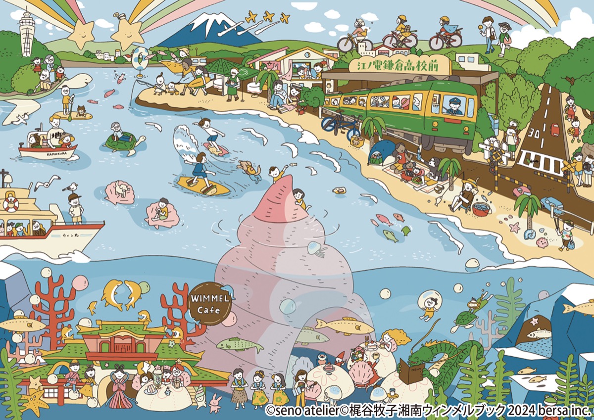 実在する街の景色の中に、住む人やキャラクターなどをユーモアを交えて細かく描いた文章のない絵本「ウィンメルブック」の湘南版が4月12日(金)に発売される。