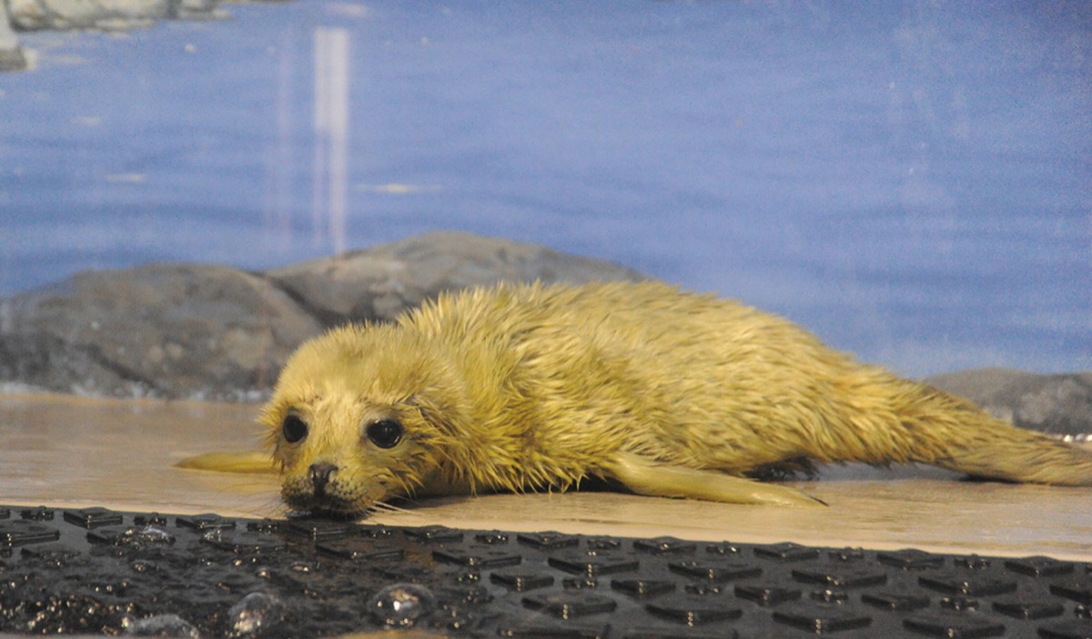 新江ノ島水族館では初となるゴマフアザラシの赤ちゃんが19日に誕生した。生まれたばかりの赤ちゃんは流氷の保護色と同じ白い体毛で覆われており、愛らしい姿が来館者を魅了している。