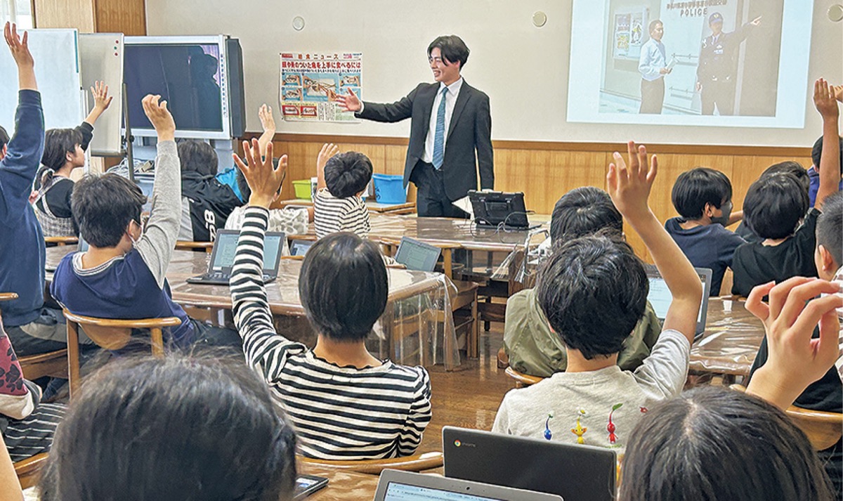 授業を受けた児童は「税金が具体的に何に使われているのか分かって必要なんだと感じた」と話し、繁里洋子校長は「若い方が講師でみな身近に感じ、分かりやすく興味を持たせる授業だった」と評価していた。