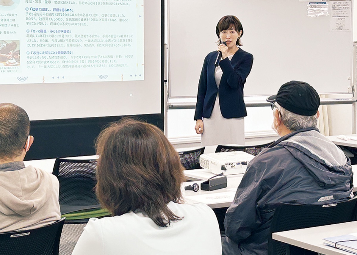 中村さんは、金融機関での経験を基に「老後のお金」を学ぶ中、「知っていると知っていないとでは大違い」と実感。講座を開いている。「少しでもみなさんの不安が取り除けたら」と中村さん。同会場で5月は7・23日、6月は5・17日に開催予定。