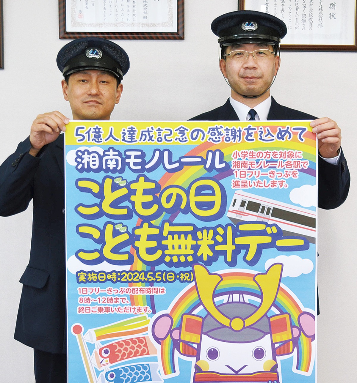 湘南モノレール(株)は5月5日(日)、小学生を対象にした「こどもの日こども無料デー」を開催する。乗車5億人達成を記念した同社初のイベントで、全線で乗り降り自由な1日フリー切符を大船―湘南江の島間の各駅で配布する。