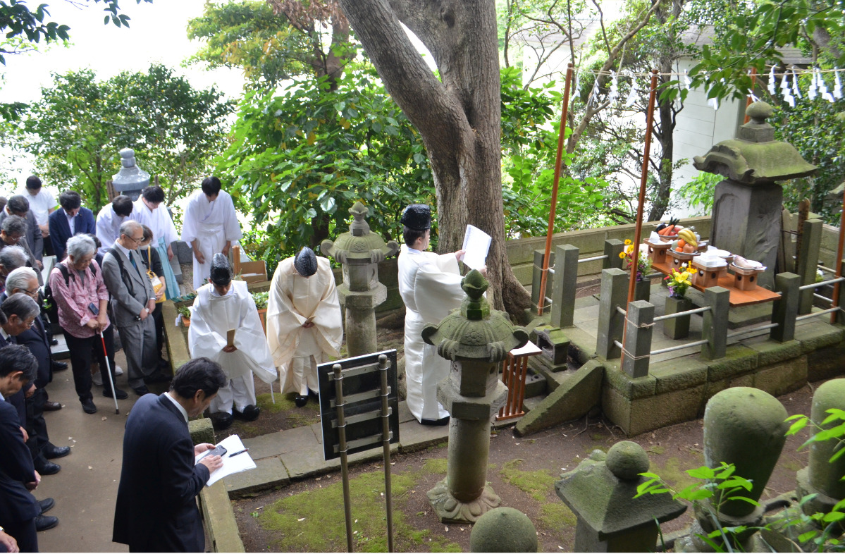 この日は、神奈川県や東京都などから鍼灸師をはじめ業界関係者約40人が参列した。林間から海を望む墓所での神事では、神職による祝詞奏上後、玉串を捧げ、「鍼聖」とも呼ばれる杉山の偉業を称えるとともに鍼灸・マッサージの振興を誓った。同祭を取り仕切る藤沢市鍼灸・マッサージ師会の太田修二会長は「杉山検校の偉業を顕彰し、思いを新たにするよい機会となった」と話した。