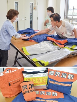「材料の確保の方法など市消防局とも検討しながら、いずれは商品化して販売にこぎつけたい」と同協会。アップサイクルしたトートバッグや巾着袋とともに、防火・防災意識も携えていけるのではと期待する。
