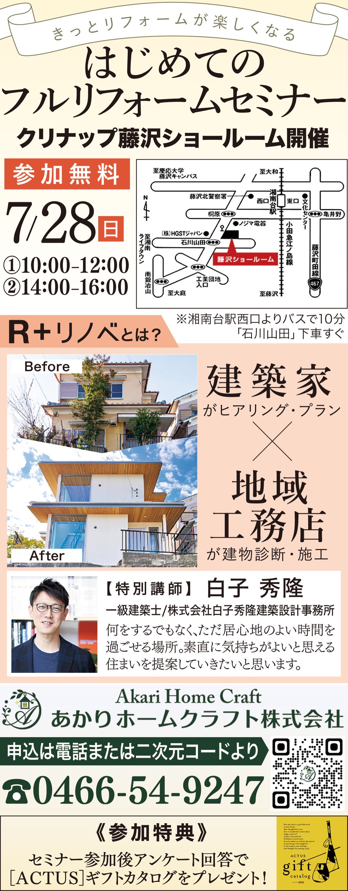 そんな人におすすめなのが、湘南台にあるあかりホームクラフト(株)が開催する「はじめてのフルリフォームセミナー」。