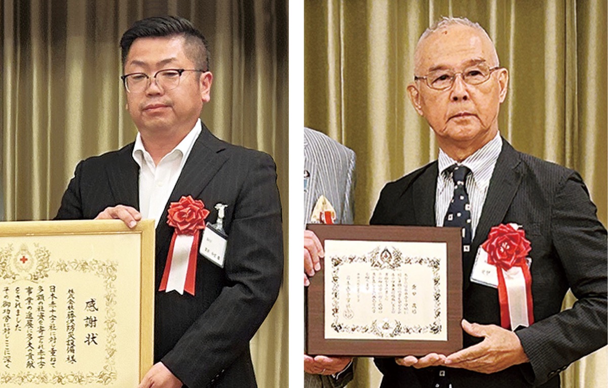 総会では支援活動への貢献に対する表彰も行われた。今年、藤沢市では愛甲茂さんが銀色有功章、(株)藤沢防災設備が社長感謝状を受けた。