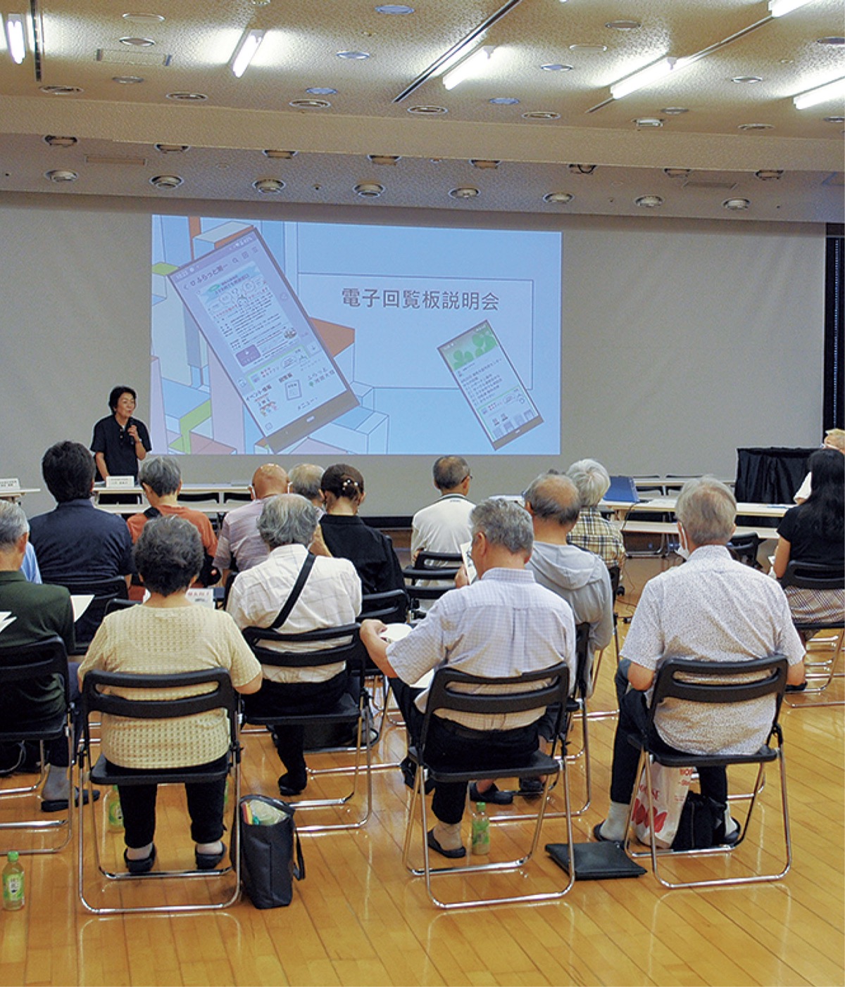 湘南台での説明会では、地区内の自治会役員など約50人が参加した。NPOスタッフから回覧板の配送から各家庭への配布など現状について解説があり、電子化することで「スマートフォンやパソコンなどから配布でき、いつでもどこでも見ることができる。紙ではできない動画も送れる」とメリットを解説。メールマガジン方式やSNSを活用した事例なども紹介した。