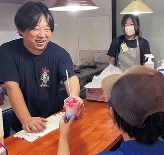取材した23日には、開始前から小学生たちが並び、提供が始まるとカフェ店内で冷たいかき氷をほおばり、「美味しい」と笑顔をみせた。