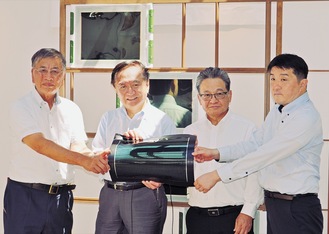 同日に開かれた実証開始式には、黒岩祐治県知事、鈴木恒夫藤沢市長、日揮の山口康春代表取締役社長執行役員、エネコートテクノロジーズの 加藤尚哉代表取締役らが出席。簡易で安価に設置できる日揮の「シート工法」によるペロブスカイト太陽電池の取り付けデモンストレーションやイルミネーションの点灯式などが行われた。黒岩知事は「”どこでも発電”できる技術で、県が掲げる2050年脱炭素社会の実現の鍵を握る。多くの人に知ってほしい」と期待感をにじませた。