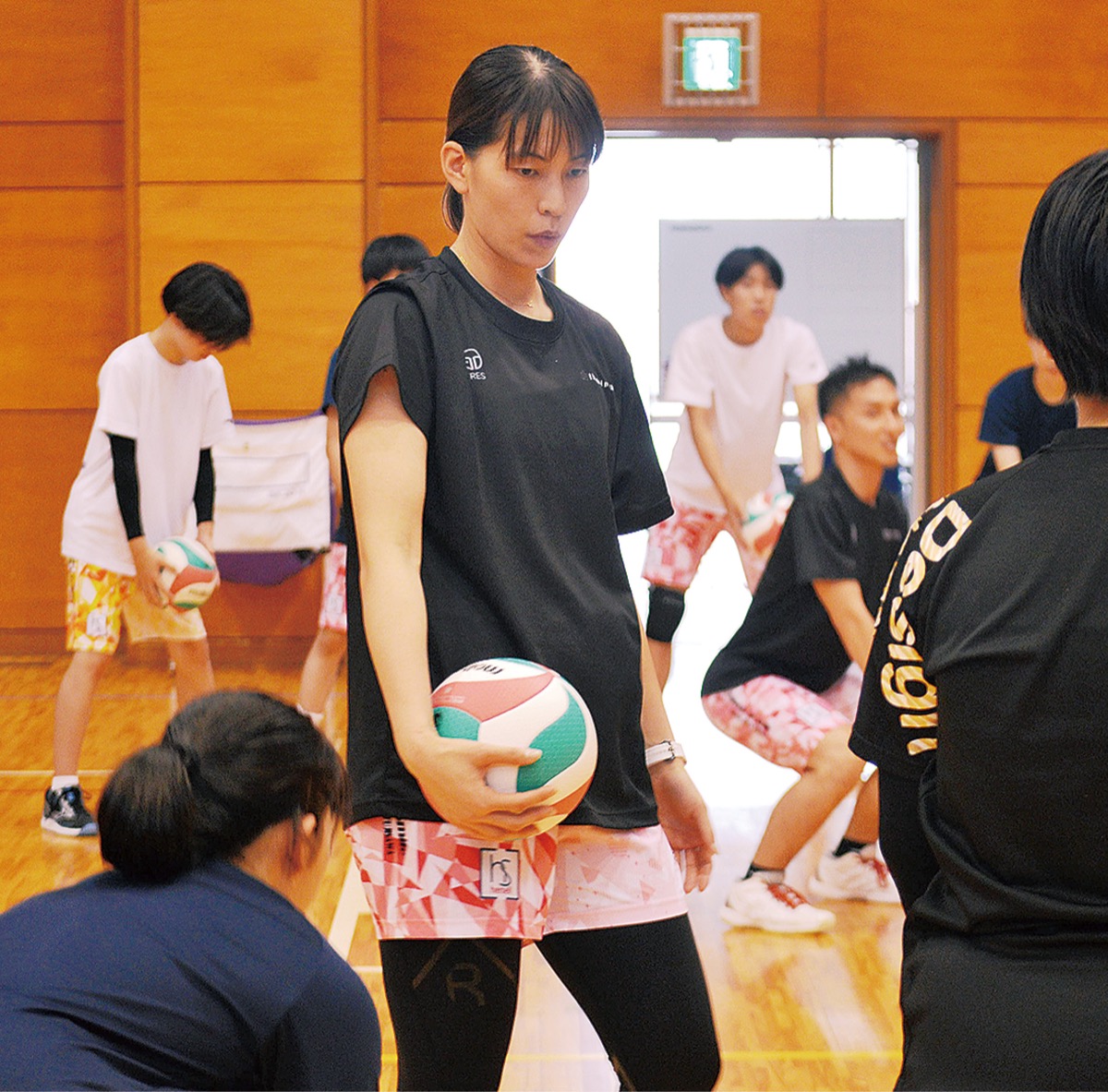 キャンプでは、ミニゲームや小さな的を狙ってスパイクをするなど、トップアスリートと参加者がコートで一緒に楽しみながら仲を深めた。岩崎選手の話を熱心に聞いていた同校3年の中山翔太さんは「ストレッチ一つとっても勉強になることばかり。試合に臨む姿勢や体調管理、体のケアも大切だと改めて気づかされた」と話した。