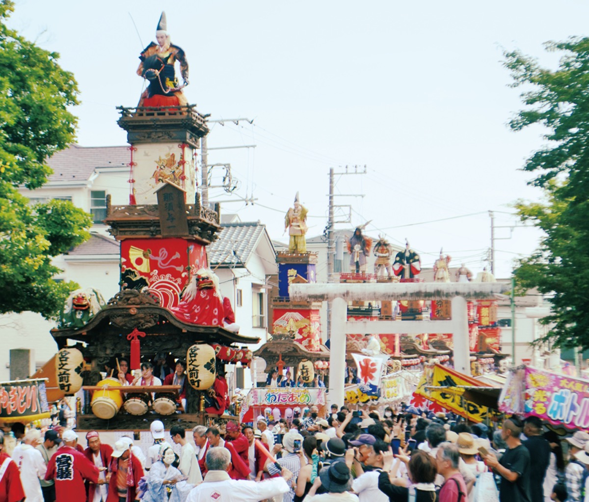 「烏森神社」の愛称で親しまれる皇大神宮(鵠沼神明)で17日、例大祭が行われた。高さ約8mにもなる人形山車を一目見ようと、市内外から5千人弱が訪れた。