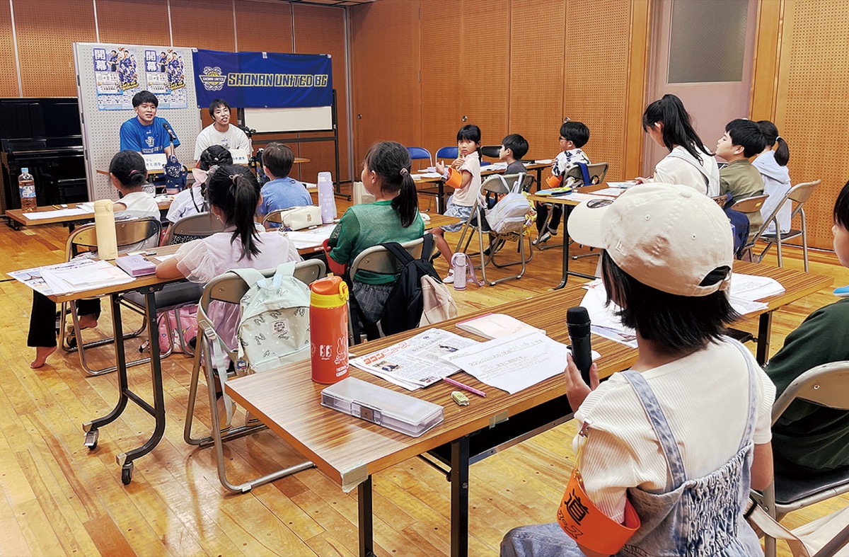 この日、子どもたちは地域新聞社の記者から仕事にまつわる講義を聞いた後、疑似記者会見に挑戦した。会場に現れたのは、プロバスケットボールチーム「湘南ユナイテッドBC」の内田旦人選手と重冨周希選手。子どもたちは物おじせずに「練習のない日はどのように過ごしていますか」「憧れの選手はいますか」など各自、積極的に質問を投げかけた。
