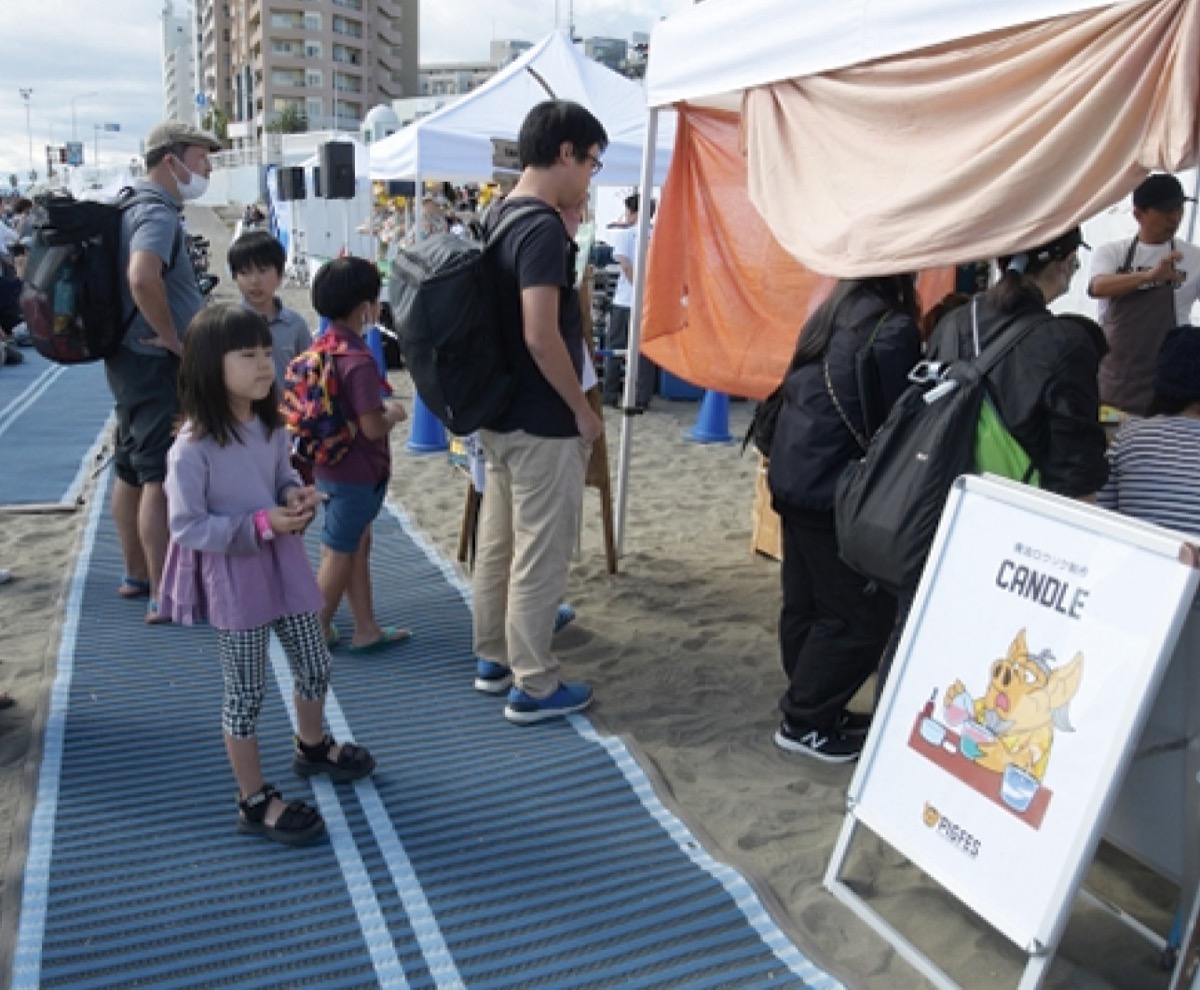 「PIG」は包摂的なビーチを目指す「Peaceful Inclusive-beach Goals」の略称。「NO BORDER ONE MIND」をテーマに、砂浜に車椅子でも通行できるバリアフリーロードを設け、ビーチクリーンを行い海のごみを拾った後、障害者スポーツや、誰でもできるワークショップ、ライブなどが楽しめる。昨年から始まった。