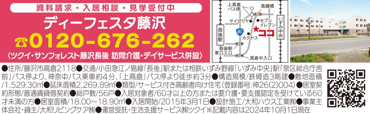 サービス付き高齢者向け住宅「ディーフェスタ藤沢」 10月末まで