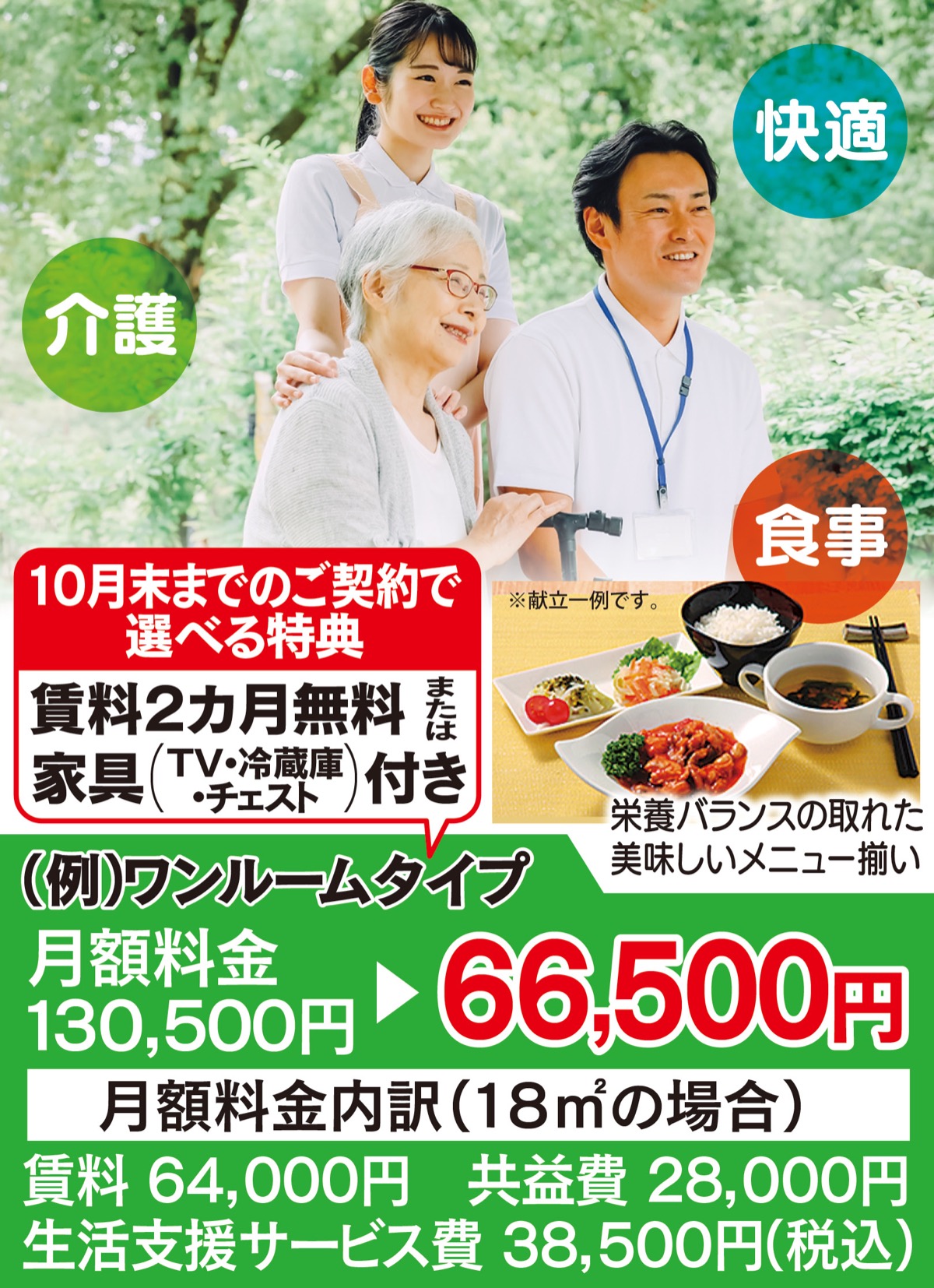 大和ハウスグループのサービス付き高齢者向け住宅「ディーフェスタ藤沢」は、10月末日までの契約で賃料が最大2カ月無料または家具付きを選択できるキャンペーンを実施している。