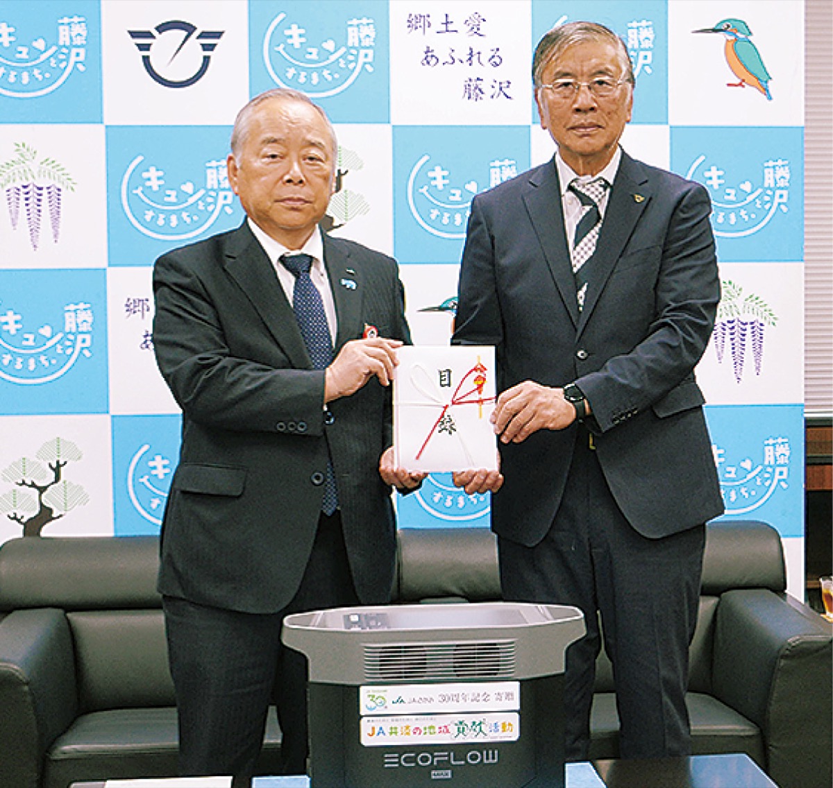 さがみ農業協同組合(JAさがみ/西山國正代表理事組合長)は10月28日、ポータブル電源13台を藤沢市に寄贈した。両者は2008年に災害時応急生活物資供給等の協力に関する協定を結んでおり、寄贈は防災連携と地域貢献事業の一環。